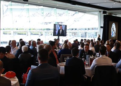 Set within a beautifully appointed room featuring floor-to-ceiling glass frontage, the lounge overlooks the MCG playing surface and provides an elevated view of the pre-game build-up. This premium function includes reserved seating directly in front of the room, ensuring easy access to your seat and uninterrupted game-day atmosphere.